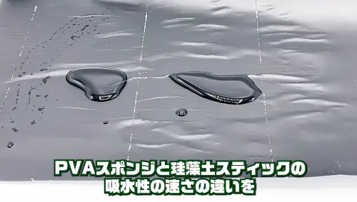 PVAスポンジの密度の高さによる毛細管現象の吸水スピードはさすがの珪藻土でも勝てません!