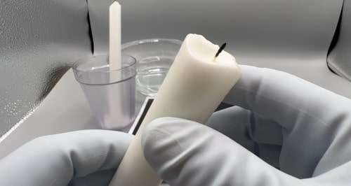 さて、先ほど石油由来のパラフィン製ローソクと植物由来のSM用ローソクでは解ける温度が違うとお伝えしました。